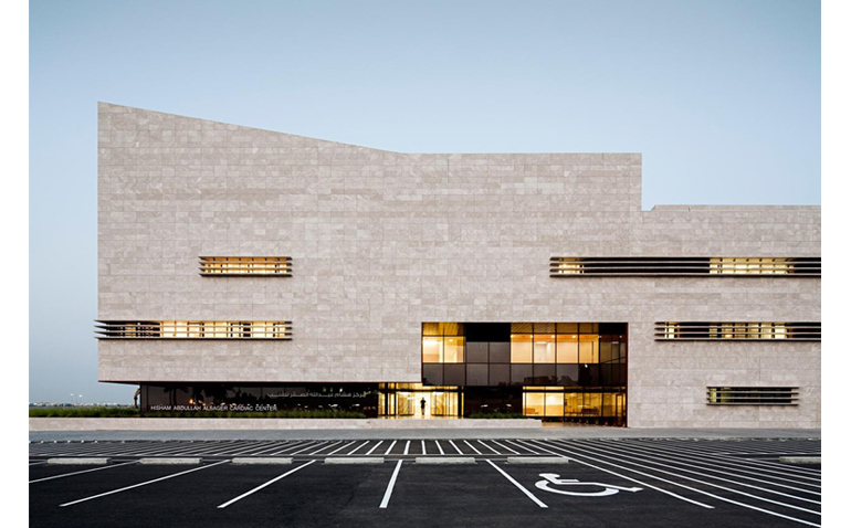 AGi architects propone un tratamiento más cercano a las dotaciones socio-culturales, generando un cuerpo rotundo de piedra marcado por dos grandes aperturas de color rojo en fachada, que invitan a acceder al interior del edificio/organismo, e insinúan lo que el usuario se va a encontrar una vez penetre en él. Esta piel de piedra es la que proporciona, además, la protección necesaria a las duras condiciones climatológicas kuwaitíes, garantizando unos niveles altos de sostenibilidad y bajos costes de mantenimiento.