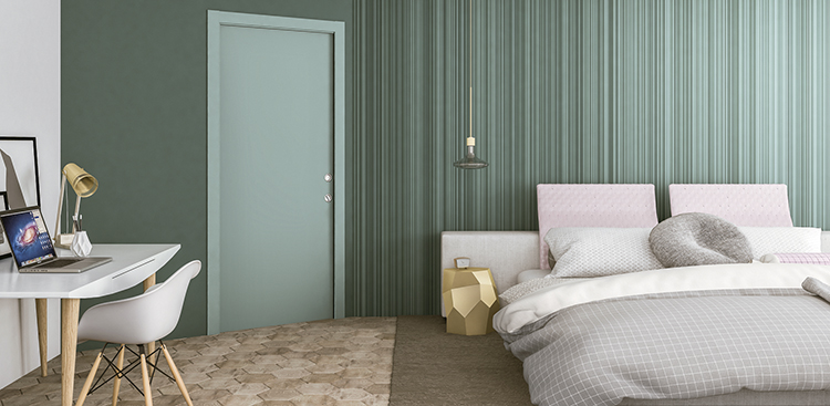 El sistema de deslizamiento, de la línea Scrigno Gold, está compuesto por una guía en aluminio, dos carros en acero y cuatro cojinetes de bolas. Finalmente, presenta una cerradura con puntos fijos antipalanca en la parte inferior, que favorece el posicionamiento de la puerta al cerrar, para una fusión indisoluble con la pared.